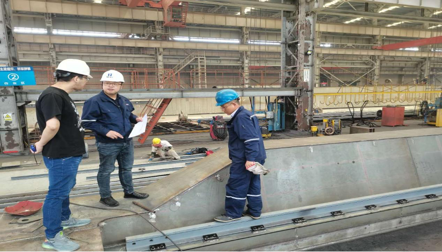 2021年,莊巍同志發(fā)現(xiàn)原先運用在陸豐900t固定式門座機上的工藝還可以改進(jìn),于是在反復(fù)地試驗和不懈地努力下,將改進(jìn)工藝運用到三澳650t項目中,解決了廠內(nèi)吊裝設(shè)備能力不足且避免請大型起吊設(shè)備花費大額費用的問題。同年公司接單的德龍5037門座機項目在海重公司制作,由于該類型也是海重公司第一次制作,門架門腿結(jié)構(gòu)特殊,正常制作無法滿足圖紙要求,經(jīng)過一系列制作樣品驗證,且在圖紙視圖存在缺陷和無檢驗基準(zhǔn)情況下,他卻始終堅信“沒有完不成的項目”,在經(jīng)過不斷的實踐后,發(fā)現(xiàn)可以通過放樣設(shè)計基準(zhǔn)靠板可以解決問題,最終讓制作班組快速順利地完成了制作任務(wù)。