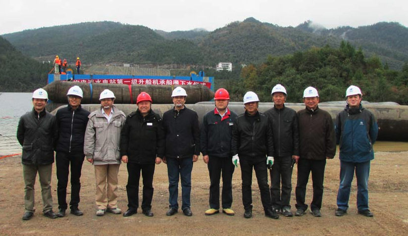 2015年12月18日,華新機電承建的構皮灘一級升船機承船廂順利下水并且浮運進入船廂室。升船機承船廂采用氣囊整體移運入水和船舶拖帶浮運進入船廂室是國內(nèi)首次實施,標志著華新機電在構皮灘項目中的階段性成果。