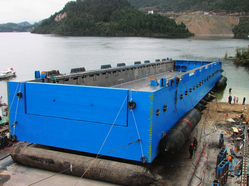 構皮灘一級升船機承船廂構皮灘通航工程是當今世界通航水頭最高、單級提升高度最大、主提升設備規(guī)模最大的通航建筑物。為此公司董事長徐學明親自掛帥,在公司領導和相關部門的大力支持下,克服了現(xiàn)場施工的種種困難,加班加點按原定計劃完成結構制作;項目部根據(jù)現(xiàn)場有限的條件精心組織、科學決策,克服烏江流域內(nèi)沒有專用拖帶船、在沒有可供借鑒的案例情況下,編制了詳盡的氣囊下水方案、船廂拖帶方案、各工況下的安全評估報告和應急預案, 從而保證了承船廂平穩(wěn)入水、安全進入船廂室。