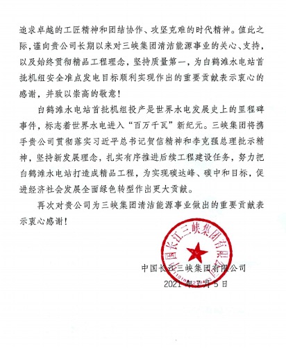 隨著各個(gè)工程項(xiàng)目階段性的驗(yàn)收和竣工,近幾個(gè)月來(lái),華新機(jī)電陸續(xù)收到了來(lái)自西藏能源、三峽集團(tuán)、中核總、印尼、非洲等公司發(fā)來(lái)的感謝信和表?yè)P(yáng)信。對(duì)于客戶(hù)的充分肯定和高度認(rèn)可,公司倍感欣慰,也為能參與這些重大項(xiàng)目的工程建設(shè)深感自豪。烏東德、白鶴灘水電站橋機(jī),“華龍一號(hào)”福清核電站橋機(jī)、西藏DG水電站橋機(jī)、印尼芝拉扎卸船機(jī)裝船機(jī)、非洲幾內(nèi)亞裝船機(jī)等,都無(wú)一不滲透著華新機(jī)電人的智慧和留下了的辛勤汗水。
