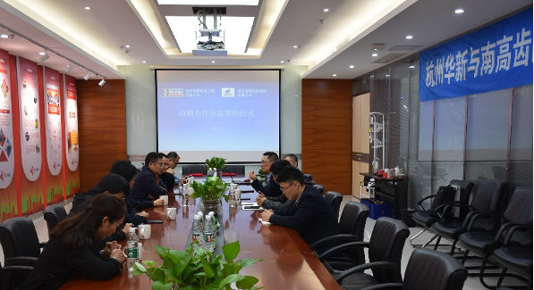 王吉如總經(jīng)理代表華新機電對南高齒多年來的工作支持表示感謝,并簡要介紹了華新機電近幾年在產(chǎn)品轉(zhuǎn)型升級、經(jīng)營模式、生產(chǎn)制造、科技創(chuàng)新等領(lǐng)域的發(fā)展情況。因華新機電在港口機械制造特別是在卸船機產(chǎn)品上占有一定的市場份額,具有較好的品牌影響力、產(chǎn)品產(chǎn)銷量大等特點,南高齒在齒輪行業(yè)也處于領(lǐng)先地位,期待此次華新機電與南高齒簽訂戰(zhàn)略合作協(xié)議,未來更全面地深化合作,有效發(fā)揮雙方的綜合實力、競爭優(yōu)勢,不斷拓寬合作領(lǐng)域,共同推進雙方在起重領(lǐng)域的跨越式發(fā)展。