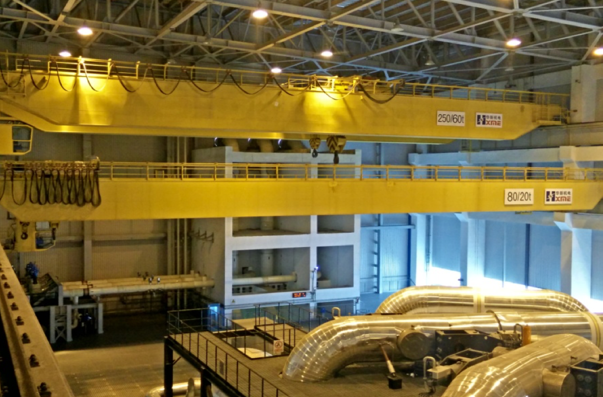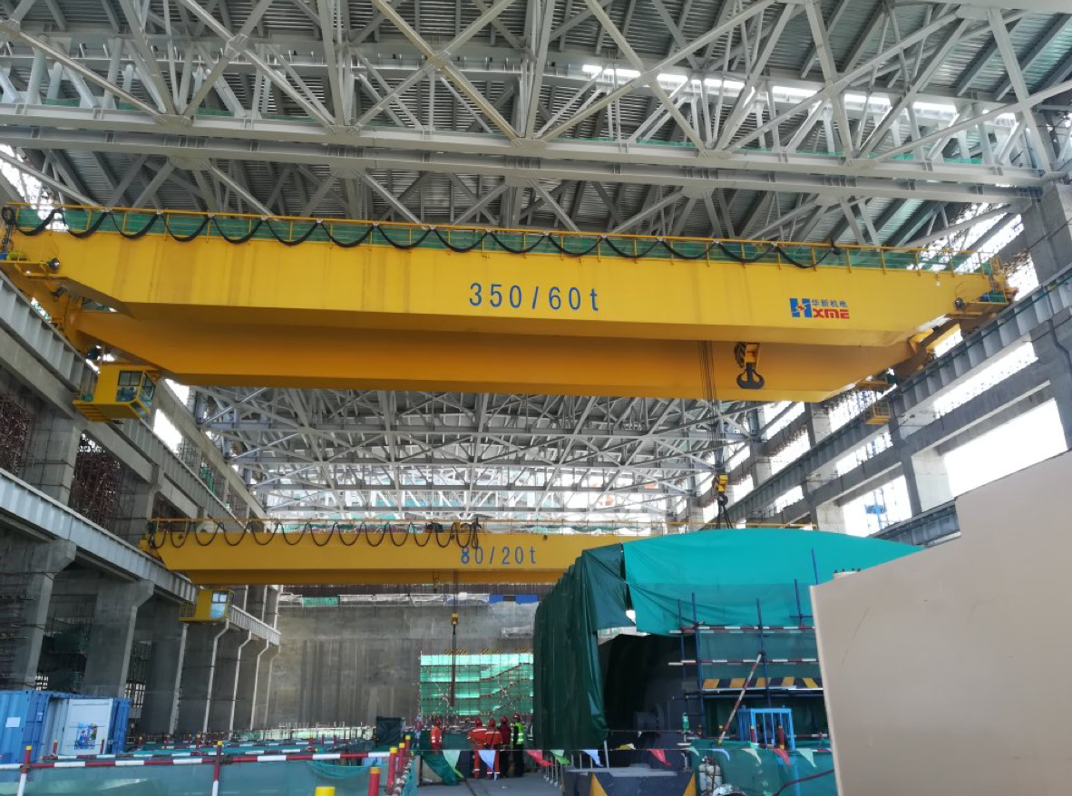 公司設(shè)計制造的所有核電廠配套用橋門機、吊車系消化吸收國內(nèi)外先進(jìn)技術(shù),結(jié)合我公司常規(guī)產(chǎn)品的成熟技術(shù),綜合核電產(chǎn)品更高的安全可靠性要求,遵照GB/T3811-2008《起重機設(shè)計規(guī)范》、GB/T14405-2011《通用橋式起重機》、NB/T20234-2013《 核電廠專用起重機設(shè)計準(zhǔn)則》等標(biāo)準(zhǔn)開發(fā)出的核電專用系列產(chǎn)品,技術(shù)成熟,安全可靠,檢修便利,特別適合核電廠各個廠房內(nèi)的設(shè)備的吊裝、搬運就位工作。公司首臺臺橋機為2006年研發(fā)、2007年投入生產(chǎn)的巴基斯坦恰?,敽穗?5/20t吊車,公司首臺臺碼頭固定吊為2008年向三門核電提供的2臺450/125t-56m固定式橋機。近14年的發(fā)展,已向國內(nèi)外眾多優(yōu)質(zhì)客戶提供近200臺核電吊車設(shè)備。目前制造過的跨度最大橋吊為450t-56m,起重量最大為900t固定吊。